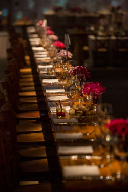 Guests entered a warm candlelit reception in a custom built tent right outside of the Hangar 11 venue, taking in pine-berry and orange spice aromas while feasting on an immaculate spread fit for this royal couple. An intimate ceremony ensued under a gypsophila canopy, mimicking an ever-so-gentle fall of snow for those dreaming of a white wedding.